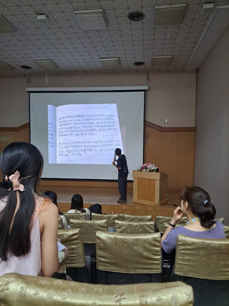 第一晚才剛泡好泡麵加入大家的夜聊,便迎來了自我介紹環節,讓我這 I 人好生尷尬。以往線上課結束後也有聊聊時段,我們都戲稱那是洗碗時間,把洗碗時間從線上的陪伴搬到現實生活中,一群人坐成一個圓,一起討論文學、分享各自的易感和探討關於生命的疑惑,有一種文人的浪漫氛圍。有些人會在夜談結束後,留下來請達陽指導文章,而達陽總是耐心的閱讀並給予回饋。